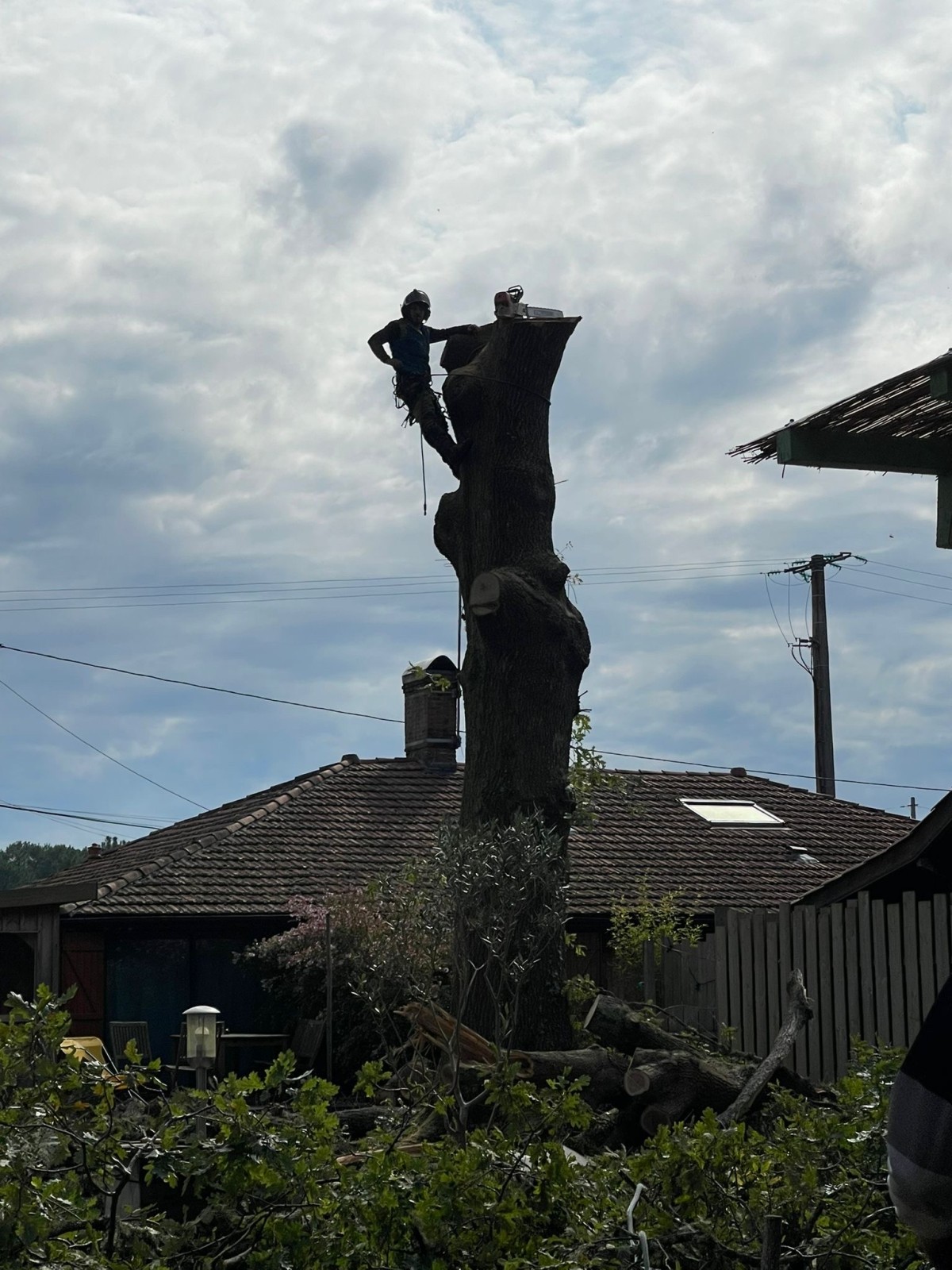 Arbo’Protect a pris en charge ce chantier délicat. Abattre un chêne dangereux n’est pas une mince affaire, surtout lorsqu’il est situé près d'une structure sensible comme un refuge pour animaux. La présence des capricornes a considérablement affaibli l'arbre, augmentant le risque de chute. Ces insectes nuisibles avaient fait des ravages, compromettant l’intégrité du chêne.